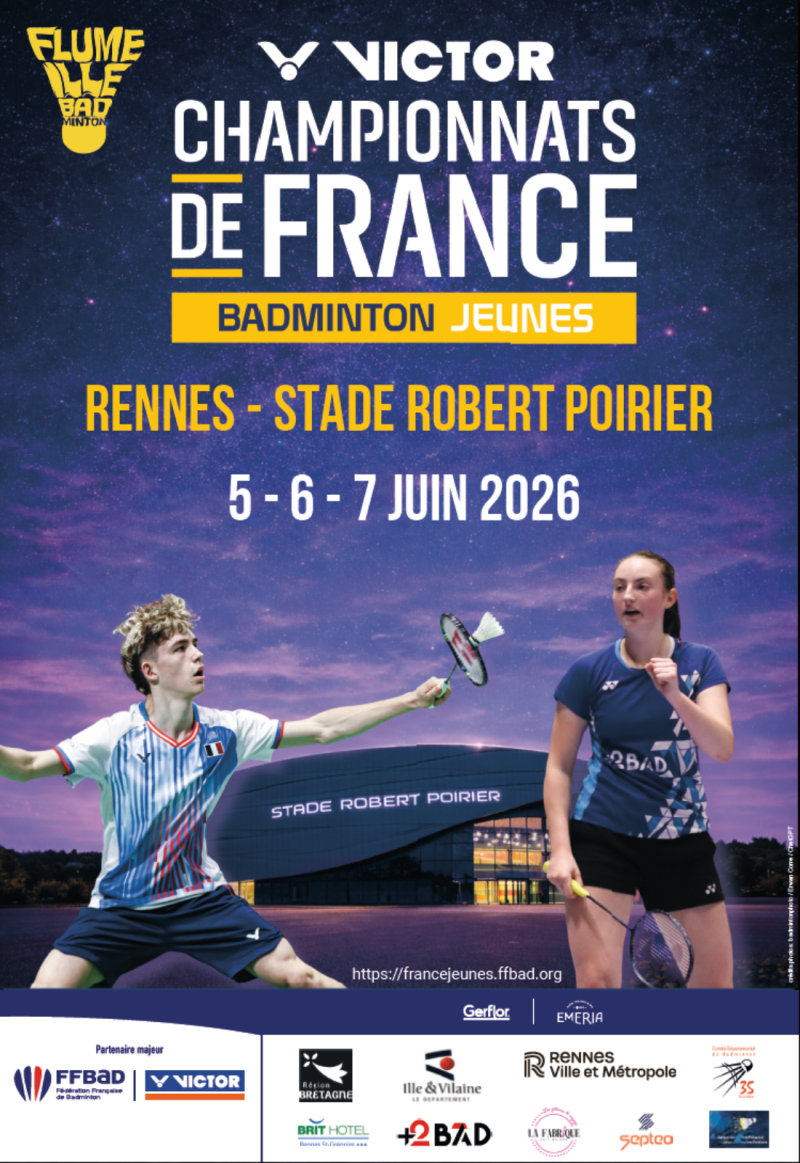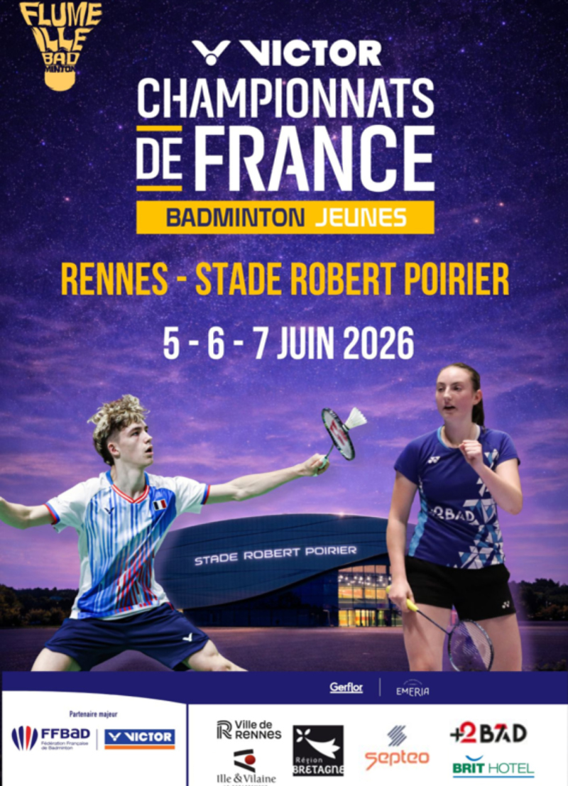 Pour cette nouvelle édition, les Championnats de France Jeunes seront organisés par le Flume Ille Badminton du 5 au 7 juin 2026.